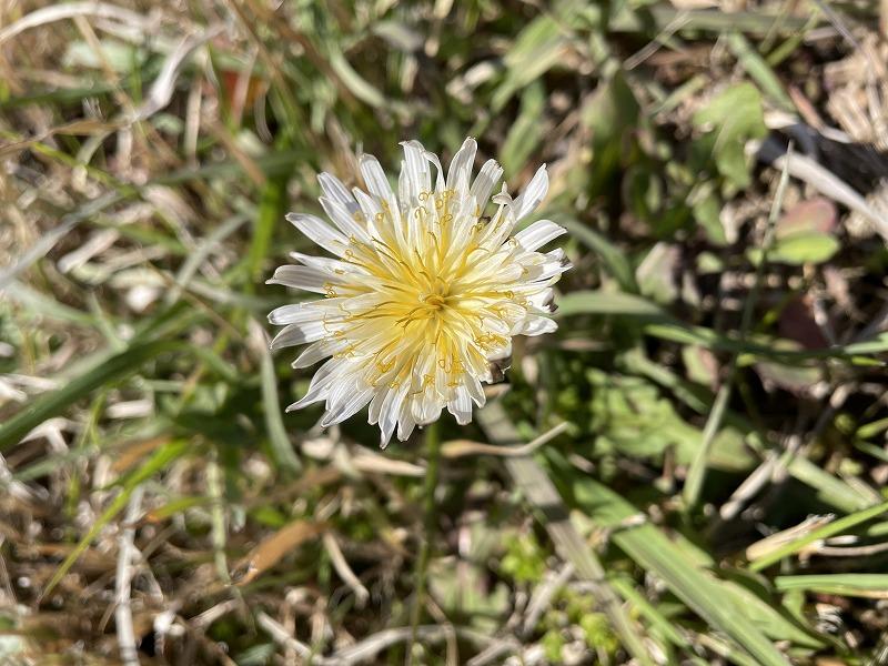 長い時間ソファーに座ってテレビを見ていたら、スマートウォッチの画面に「そろそろ少し運動をした方がいいですよ。」というメッセージが入ったのです。お知らせしてくれてありがとう。それがきっかけで歩くことにしました。土手の近くを歩いていた時のことです。「あっ、白いタンポポだ。」私は座り込んでじっと見ていました。このタンポポは、日本の在来種で春と秋に花を咲かせ丈夫だそうです。また、関東や北陸より西の地方に自生しています。シロバナタンポポの花言葉は、「私を探して」「私を見つめて」です。シロバナタンポポは自生する地域が一部に限定されされていること、希少な種類であることから花言葉がつけられました。色によって花言葉は違います。白は珍しいので、すぐに見つけられますよ。チャレンジしてね。