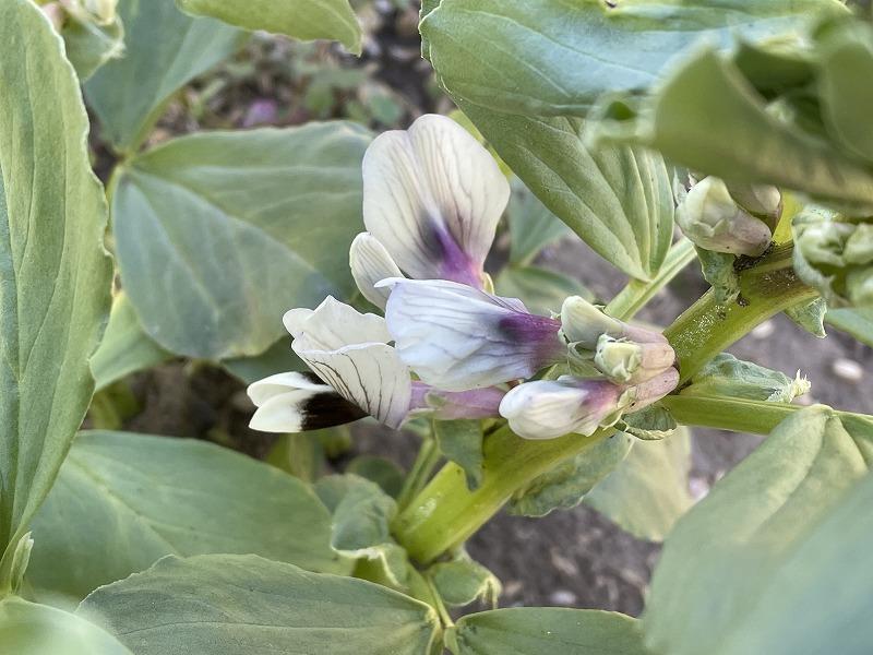 皆さんは、写真の花をご存知でしょうか?。ちょっと難しいのでヒントを出しますね。考えてみてください。ヒントは、ある野菜の花で、5月下旬から6月にかけて収穫をします。とっても美味しい実をつけます。下から上に実ができていきますよ。さあ、おわかりでしょうか?。正解は「ソラマメ」です。高級野菜と言われています。私は今年、種を蒔きすぎて、収穫期がとっても怖いです。これからは、上からカラスやヒヨドリが狙ってくるからです。どうか被害が出ませんようにと祈っています。