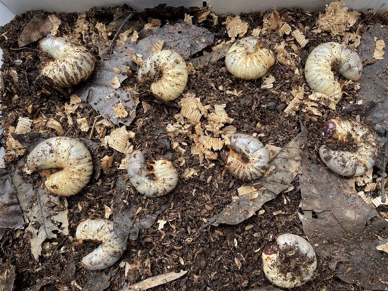 昨日のことです。積んである馬糞を畑に入れるために一輪車で運んでいるときでした。丸くなっている白い物体は何だろう?そばに近づいて手袋の手で持ち上げてみました。「あっ、分かった。カブトムシの幼虫だ。えっ、こんなに大きくなっているのだ。」とびっくりしました。幼虫は土を食べるので、馬糞の栄養でこんなに太っているのだと思ったのです。子どもたちがいれば、育てたいと興味を持つだろうなと思いました。ほしい人にはあげますから、我が家においでよ。」